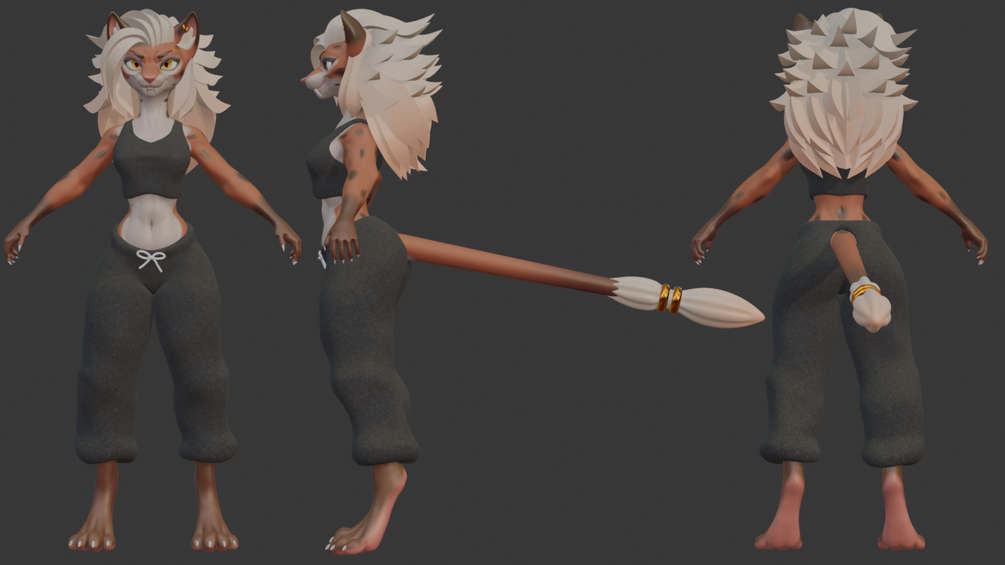 Hello, I am SpiceDrake, and this is Sasha the Sabertooth, a fully featured Blender character designed for creators, animators, illustrators, and hobbyists. This pack includes everything you need to explore posing, lighting, shading and rendering!